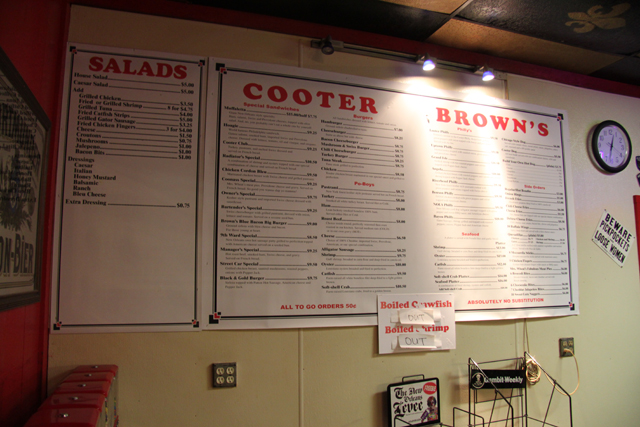 Since 1977, Cooter Brown's has been a popular watering hole and sandwich shop. Located in the historic Riverbend section of Uptown New Orleans, Cooter Brown's proudly serves over 400 brands of domestic and imported bottled beers, as well as 45 different beers on tap. Enjoy Raw Oysters from the Oyster Bar, the City's Best Boiled Crawfish (seasonal) and great tavern food including Poor Boys, Seafood, Specialties and SideOrders.