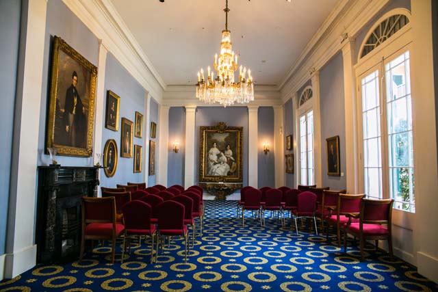 A Grand Greek revival room used for meetings, seminars, receptions, and exhibitions began life as colonial warehouse. The two-story building borders The Collection’s main courtyard and is named for the banking activities conducted by the Lizardi firm on this site in the 19th century.