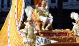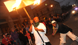 Prepare to be mesmerized as the flambeaux carriers light the way for parade floats.