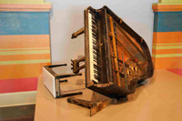 Throughout the galleries are compelling artifacts, including music legend Fats Domino's baby grand piano found in his flooded Ninth Ward house, a Coast Guard rescue basket and seats from the heavily damaged Louisiana Superdome where thousands of people sought refuge and rescue. The objects serve as touchstones in recalling the days after the storm.